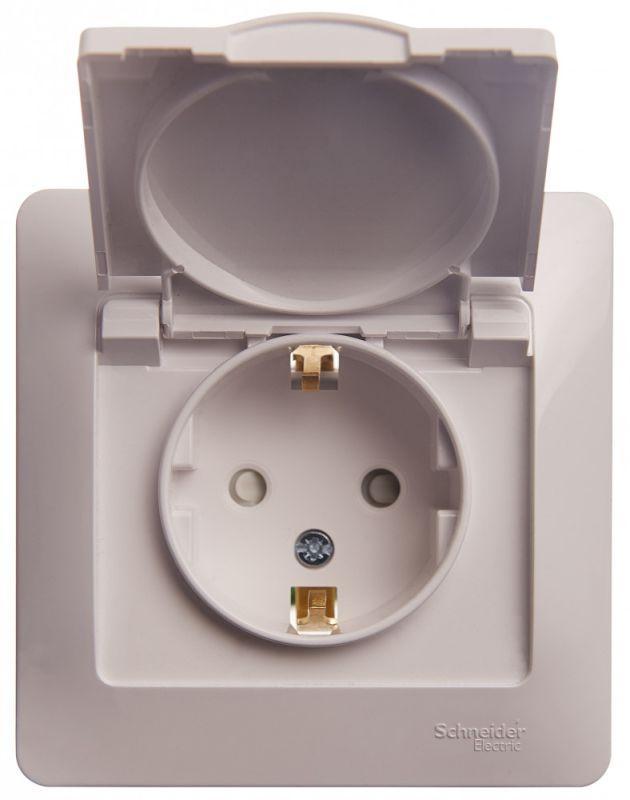 Розетка 1-м СП Glossa 16А IP20 с заземл. защ. шторки с крышкой в сборе бел. SE GSL000146